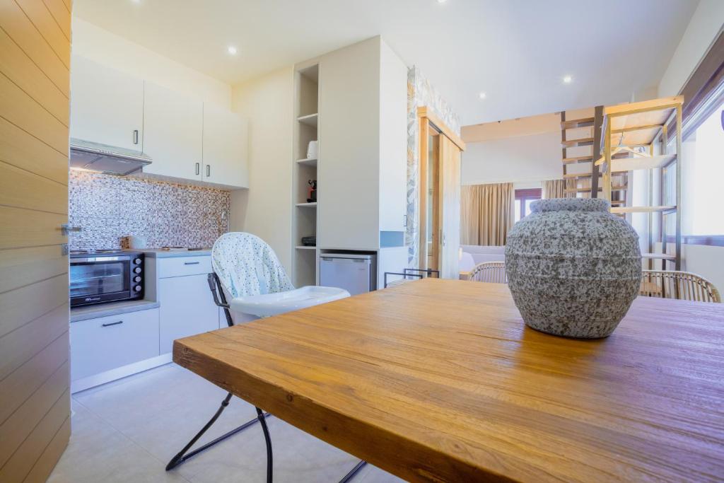 The apartment has a walk-in shower, free toiletries, full kitchen equipment (oven, hob, refrigerator, coffee maker, kettle, toaster) and family amenities such as a high chair and mosquito net.