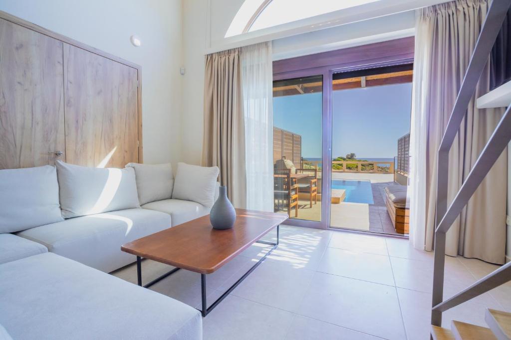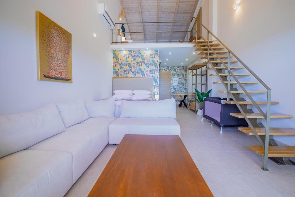 Guests can relax on the terrace or on the balcony overlooking the Ionian Sea, enjoy the private pool with a view and make use of modern amenities such as air conditioning in each room, flat TV, high-speed Wi-Fi and a washing machine.